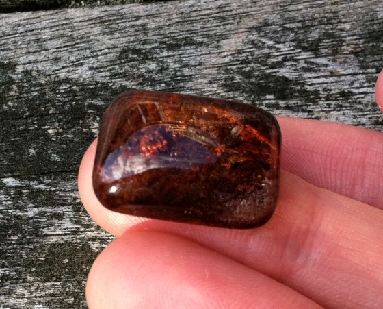 Garden Quartz-this is fairly hard to photograph. It is suspended minerals in a quartz matrix-this stone features all red/flame colors. It basically looks like flaming moss, very great in the light.