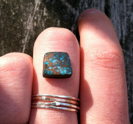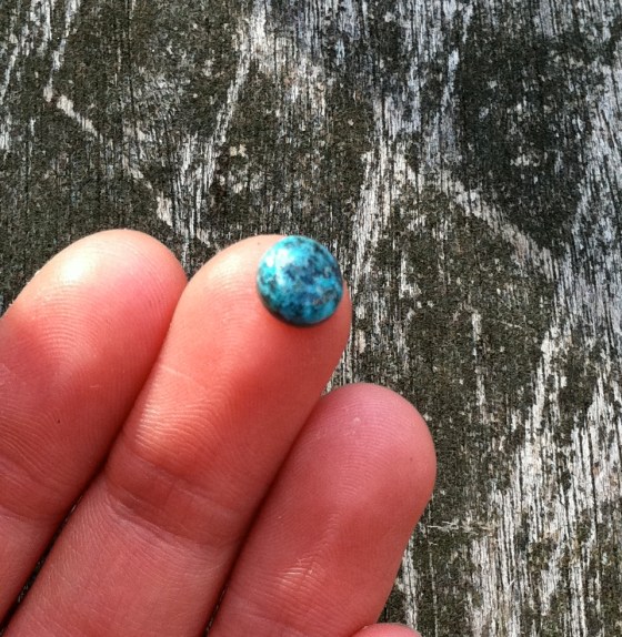 I am still in shock of finding this, yes this, little tiny square thing. It is a natural stone from my favorite turquoise mine of all time-The Red Mountain Mine. This stuff you just don’t find anymore.period. This has an amazing webbing, and the rusty red patterning within the blues that the mine is famous for. This is rare rare rare, collectable, and impossible to ever find. This stone I’m keeping for myself, but just had to share.