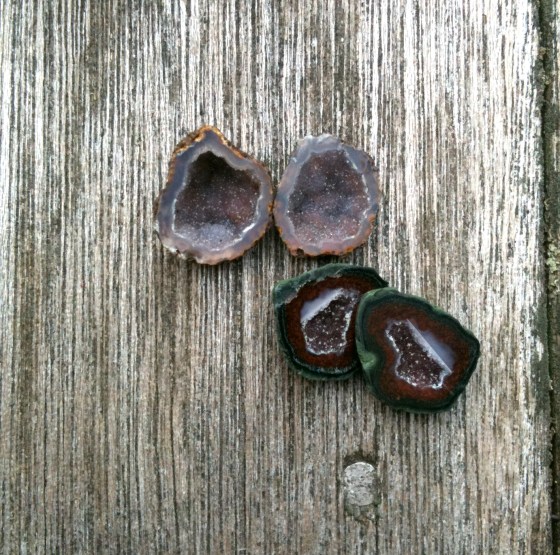 Matching Geodes! These are so nifty. Great for earrings or gauges~these are mini geodes split in half (so quite tall and domed). These sparkle and shine in the sun or the dark.
