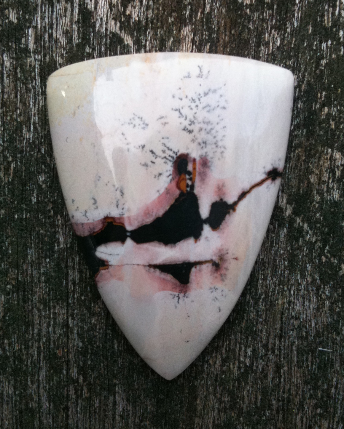 The focus isn’t great for this one, but I wanted to get as close as I could. This stone is a picasso jasper-and has an amazing image within it. Can you see a horizon line? See the girl in the middle with the orange blouse, and black skirt walking along in the meadow? This stone is just stunning. Perfect pendant size at roughly 1 1/2″