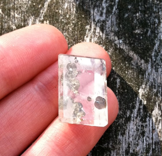 Faceted quartz gem with pyrite (fool’s gold) inclusions! These are rare, and these ones have great clarity.