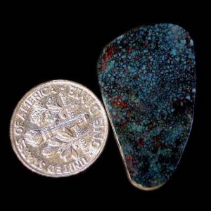 This is the only stone I have ever had or seen from this mine, it is very very collectable. This sweet little button features a bright blue colors with black inclusions. Because of how rare this is, I can offer a “Certificate of authenticity” on the mine for any jewelry pieces created with it.