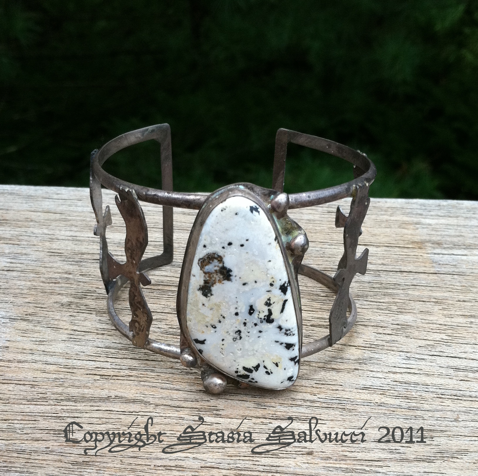 last but not least….coming by next weekend…the Crow&Buffalo bracelet, with sterling, and genuine White Buffalo turquoise…this piece is in progress!
