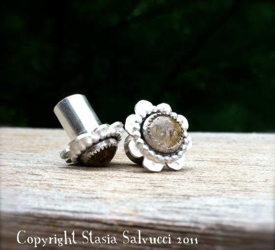 Goodies for the Gauged by Stasia shop include sterling domed flowers with 14k gold fill molten inside dots, come in all gauge sizes…