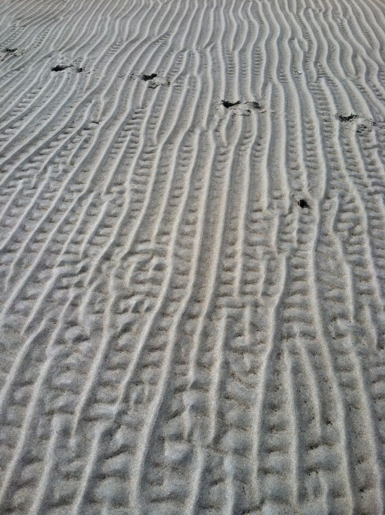I was able to sneak off to the beach last week, before the weekend rush. It was beautiful having it almost to myself…the ripples and patterns in the sands were like webs, ensnaring all visitors to lengthen their stay…