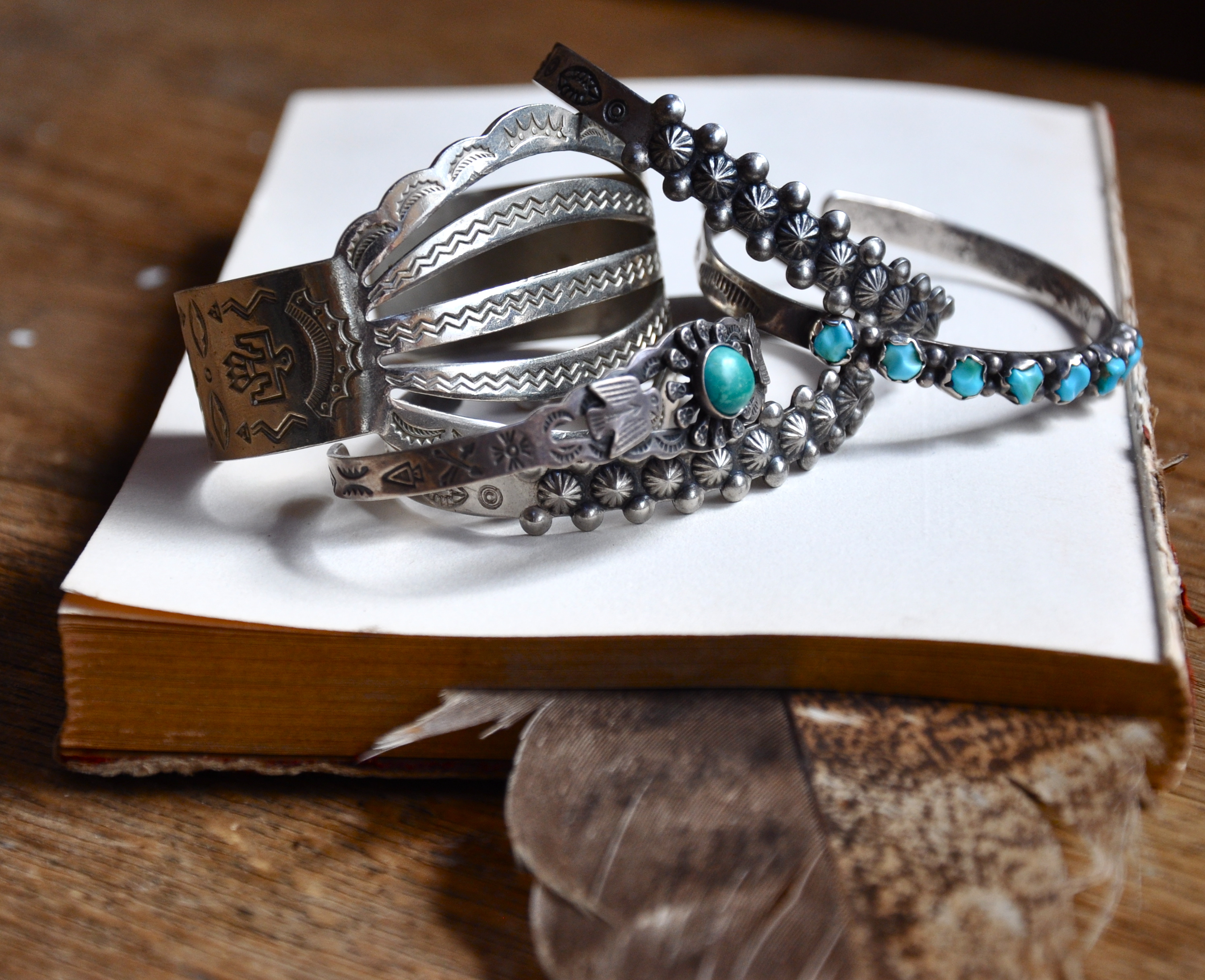 Vintage silver and natural turquoise cuff bracelets. All except the larger silver piece from my grandmother…