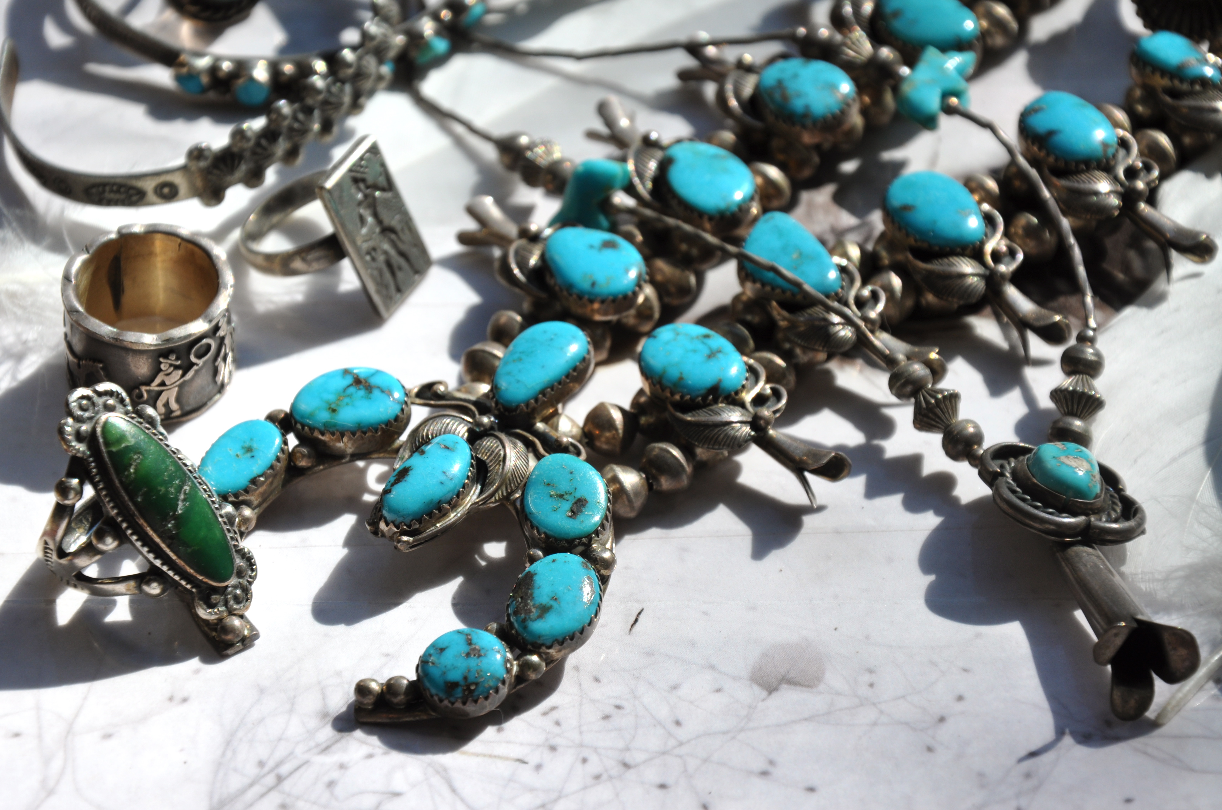Southwestern jewels, including a most beloved “Story Teller” ring, and old Navajo green turquoise ring…