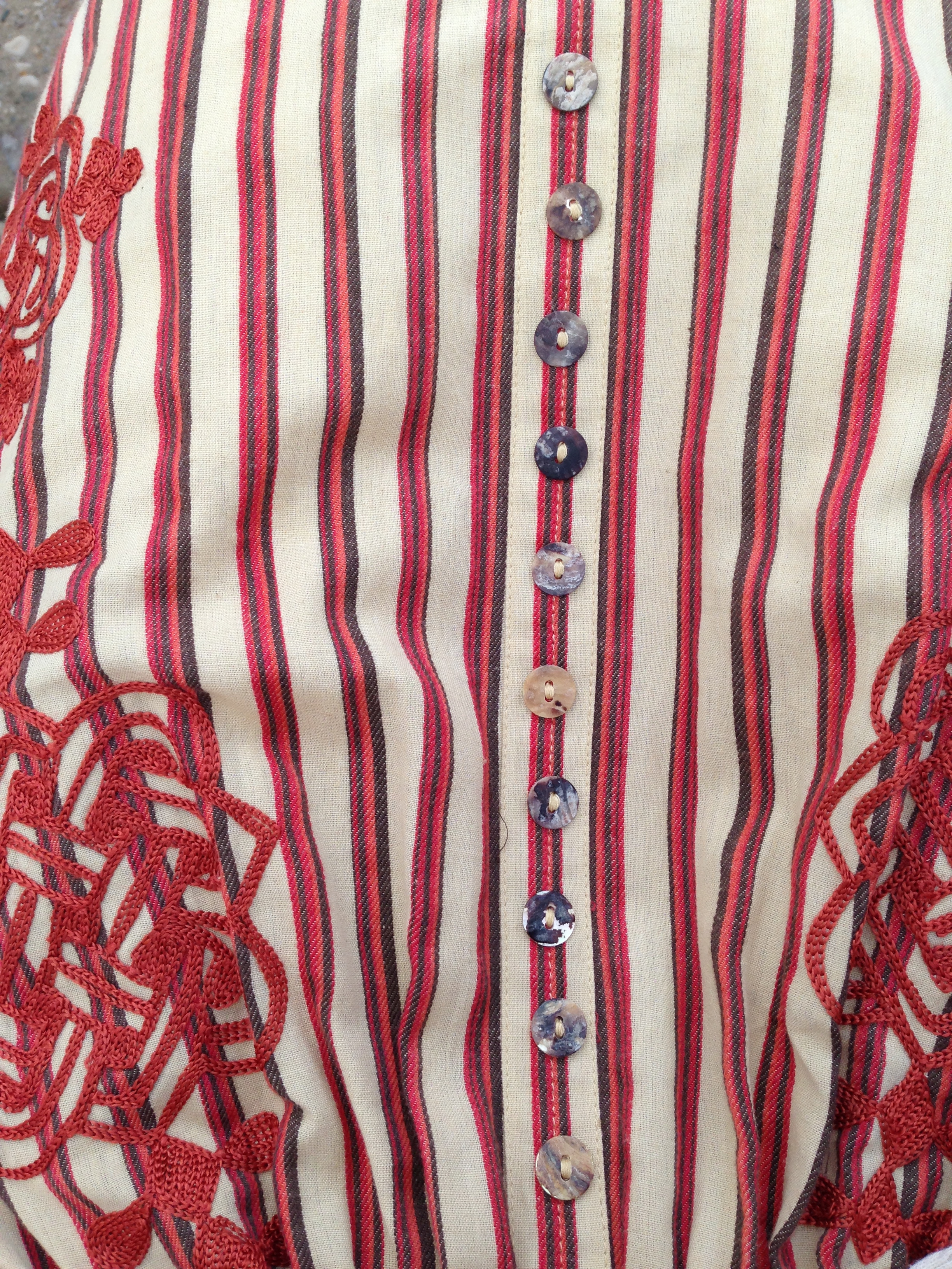To brighten things up, my friend and I ended up wearing the same bright cadmium red. I wore my “pirate wench” dress.