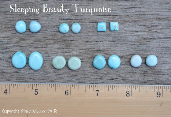 The amount of high quality natural turquoise I found was so exciting, especially because I found hardly any after diligently hunting the entire first day I was at the Gem Show. For those unfamiliar with “The Gem Show”, it is held in Tucson, AZ at the beginning of each year. There are several major gem/mineral/jewelry shows, and dozens of other mini shows. I only attended two-the major Gem Show at the Tucson Convention Center, which is more for gemstone dealers, and the larger tent/trailer gem show at the old Electric Park. Last year I met the nice Mr. Jim, who actually remembered me this year! The majority of my new turquoise (and all Fox Mine and #8 Mine turquoise) is from him. My darling niece patiently helped me pick out matching pairs. The Electric Park show was like an open candy store! Behold my newly found treats: