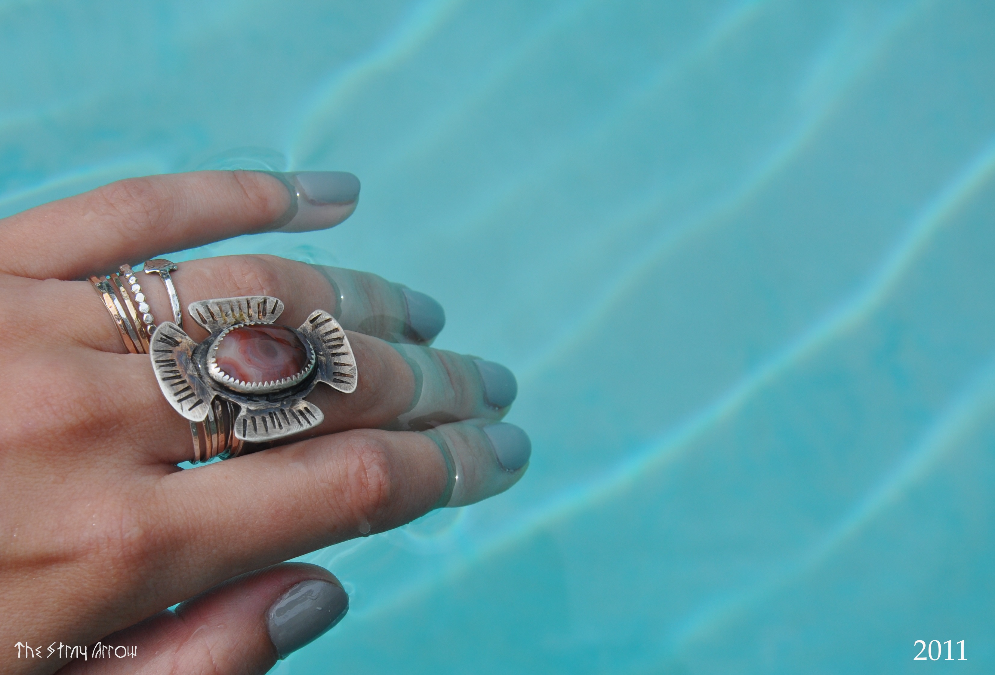 I’ve been noticing people imitating my work. While this is a touchy subject that seems taboo to talk about, this is getting unavoidable. Artisan one of a kind jewelry design is a difficult art to protect when compared to other art fields. Copies will happen. “One offs” are tolerated and occasionally flattering if the artist is *given credit* as being behind the inspiration. This is unfortunately not the case. I have been seeing people not only imitate my very specific signature materials (not that one can ever claim to own such a thing), but my writing descriptions, photography style, work title style and themes, and my overall aesthetic entirely. A continual ‘paraphrasing’, if you will. Most people have the grace to come up with their own designs, for those that don’t they bring down the work of others. I want to reiterate and remind everyone that if there is space to stamp my half inch “STRAY ARROW” logo onto an original piece, and it is not there, it is not made by me. This means that it is not backed by my quality guarantee, nor my 6 years of turquoise study experience. Just because a piece of turquoise is claimed from a mine does not equal good quality. I am an artist with eccentric interests, and my jewelry work is an extension of that. I try to be respectful of everyone’s creative and intellectual property, and truly wish the same in return.