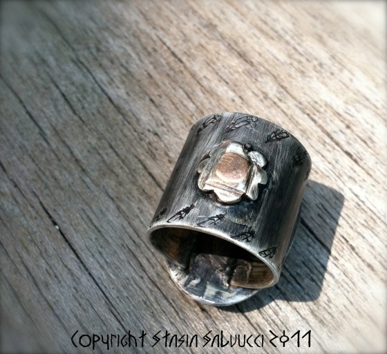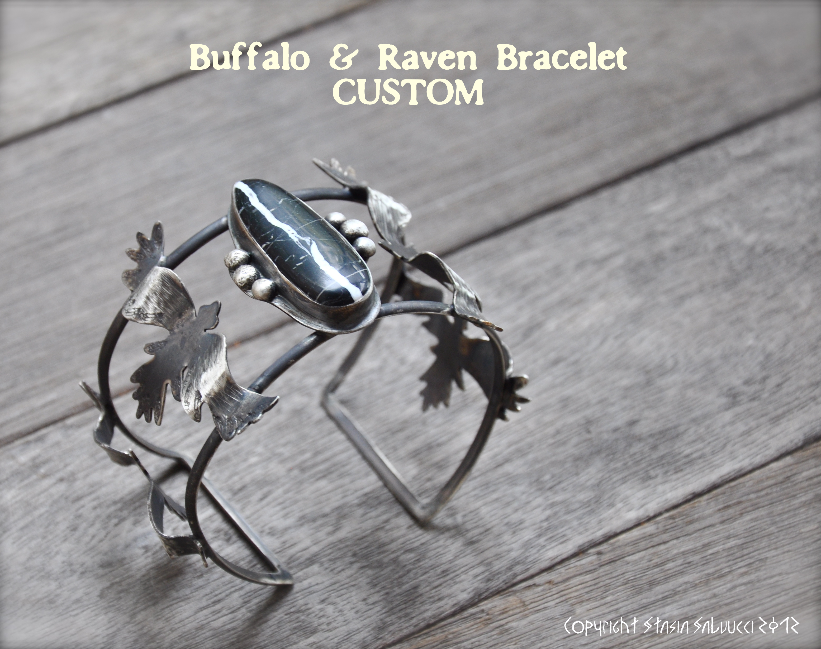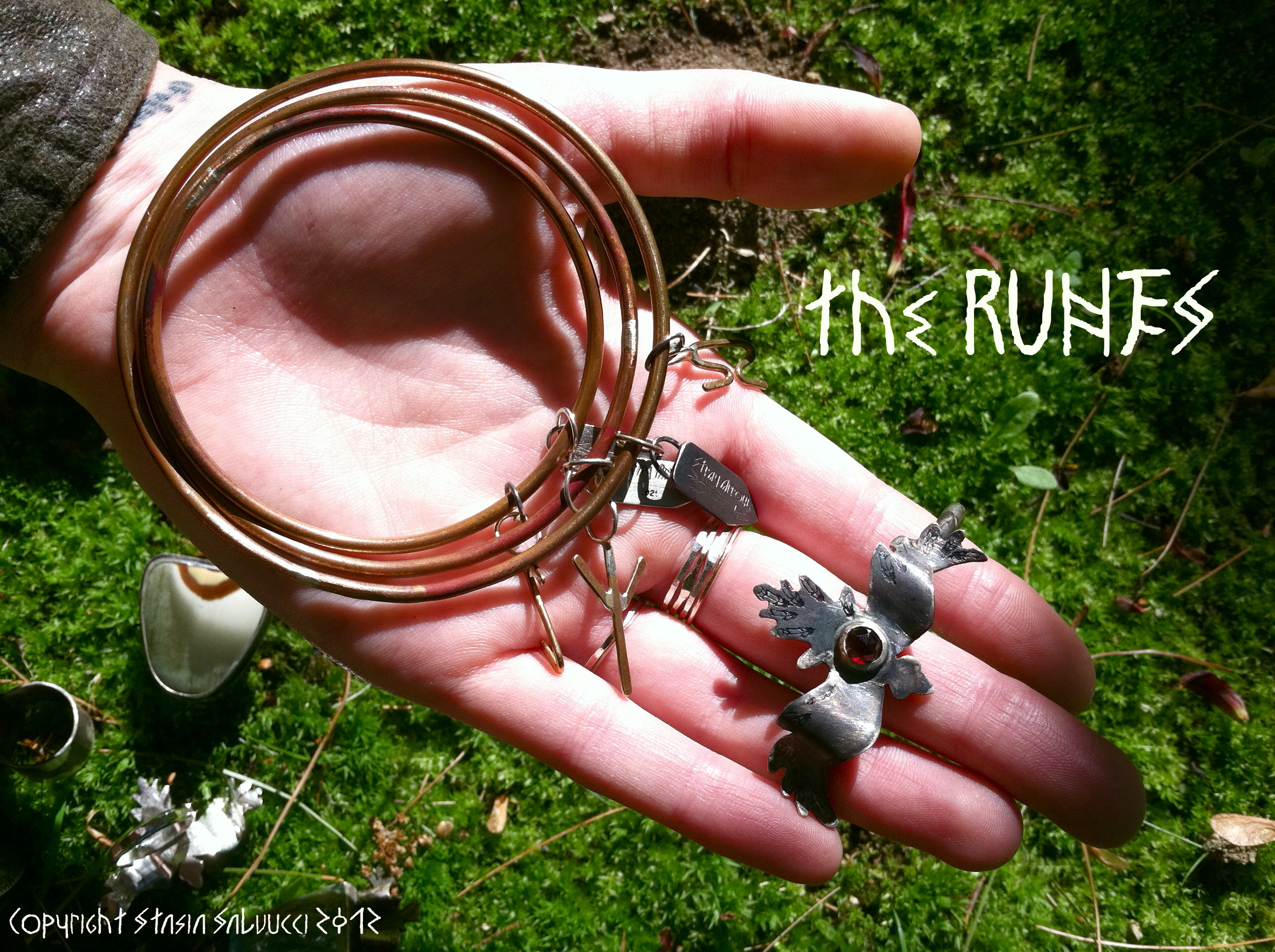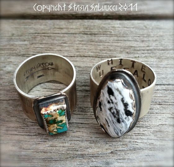 Having an abundant number of interests and getting inspiration from a vast number of sources always seems to leave me flustered and behind. Well-not this week! It is officially crunch time. Why? Because it is summer, and like most folks I’d love a day or two outside myself! This week I will be finishing up ALL pending commissions, and FINALLY releasing these RUNES I’ve been hinting at. The affordable Runes line will include the mini bronze & silver necklaces already currently in the shop, bronze and copper rune bangles, and larger copper runes on deer hide leather for fellas and ladies alike. Odin’s ravens will also make an appearance in the silver bangle bracelet persuasion. This will tie in my Black Bird pieces. A blog post Thursday will explain the origin of the Runes in Nordic mythology, the original purpose and use of runes, and all of the runes to choose from for custom pieces. In one weeks’ time, next Sunday, will be my first Rock Appreciation day! Check back then for a full post dedicated to the controversial White Buffalo Turquoise~