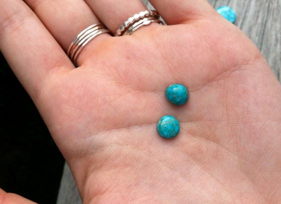 Recent conquests yield 3 pairs and one large cabochon of natural turquoise. The first two pairs are perfect for the gauged folk or those desiring earrings…
