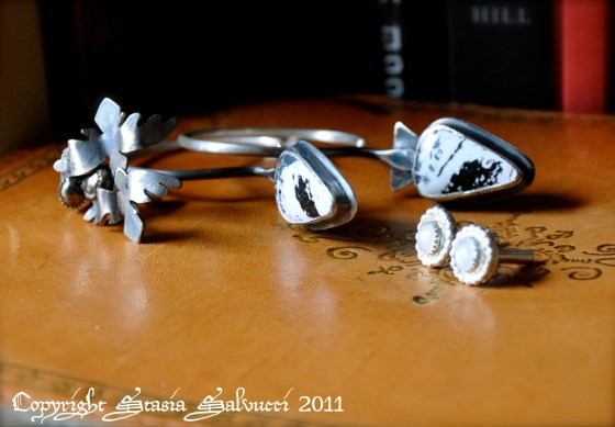 Throughout the past few weeks I’ve been struggling to find time to create new goodies for both Etsy shops-and only just now have some fresh bling to share! Being a “one woman show” not only entails creating and photographing items to list, but commissions (convos, sketches, etc.), packaging-cards, decorating parcels, networking, supplying boutiques, and add to that gem/stone hunting and an actual day job and we get a burnt out Stasia. While both of my shops are not taking on any commissions this month (thank you for your patience!), I have literally spent the whole month *catching up* on commissions and finishing them. Don’t even think about interpreting any of this as complaining! The only things that may be sad here are my fingers. I love personalizing and creating for specific moments. I also love to brainstorm more on all the half finished projects in the corners of my studio. I find the pieces I let sit around in stages the longest always come out the best.
