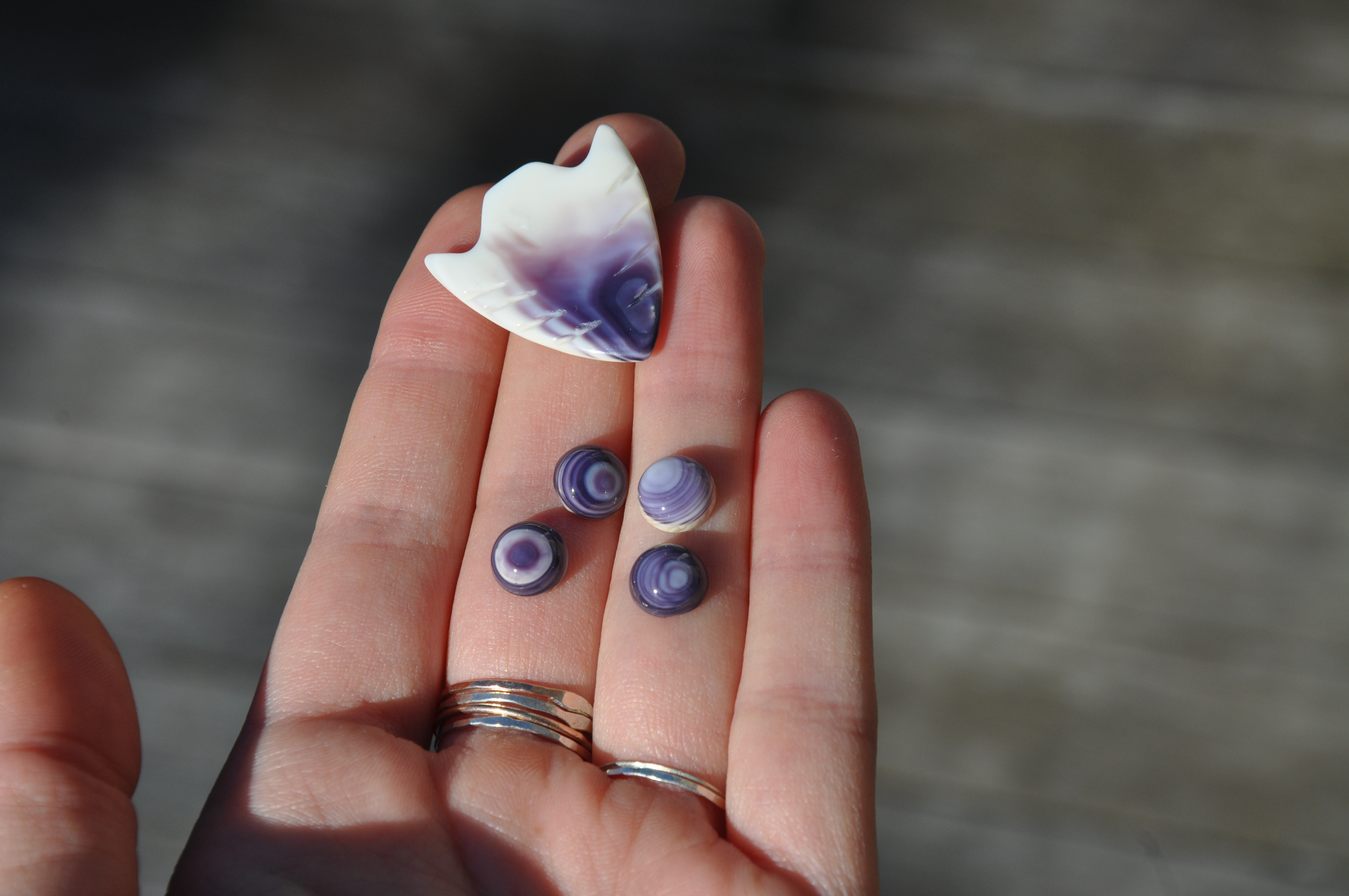Also in mid-production are new WAMPUM earrings. I have gabbed about wampum a lot in earlier posts, I can’t get enough of it.