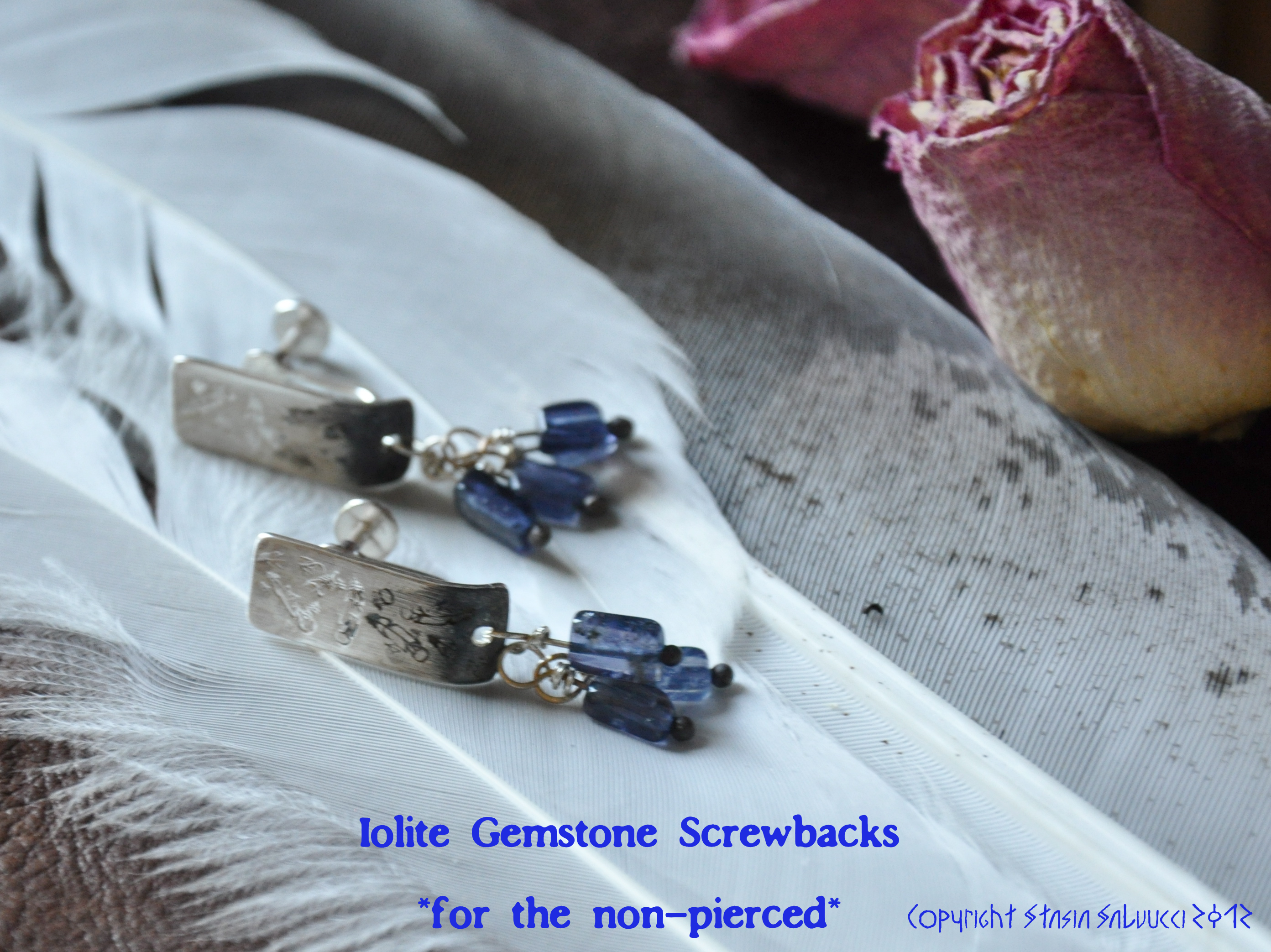 Hitting the shop over the next couple of days, we have iolite gemstone ‘Starry Night’ earrings that are screw backs for those with no ear piercings~