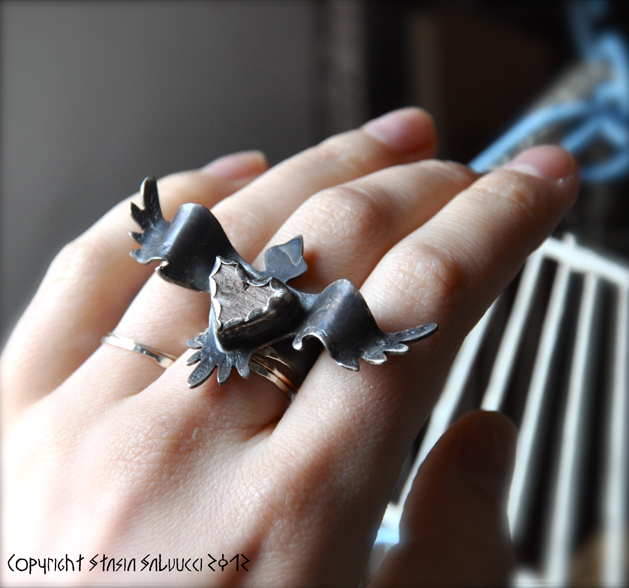 A touch of gemmy greenery will embellish the shop with the “Emerald Sweet Heart” ring, featuring a rose cut faceted emerald gemstone and mini silver heart on oxidized sterling band….currently in a size 5, can be sized up to a 6 or “made to order” in your own size!